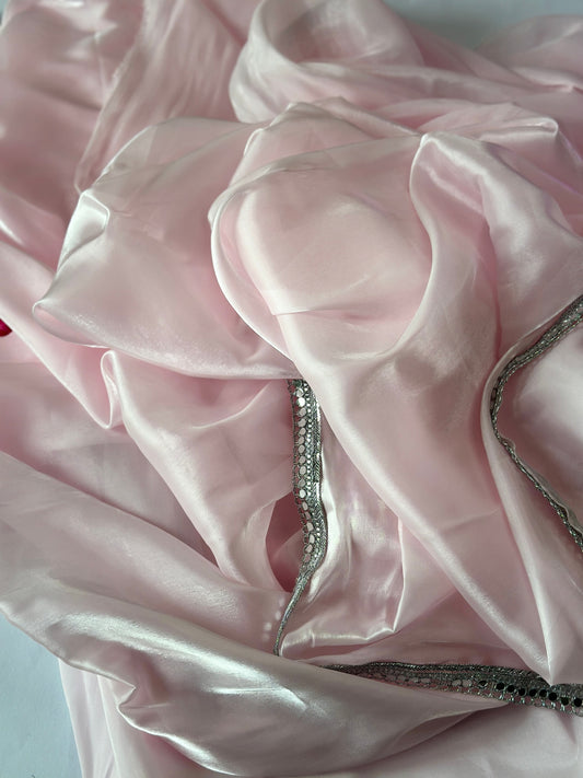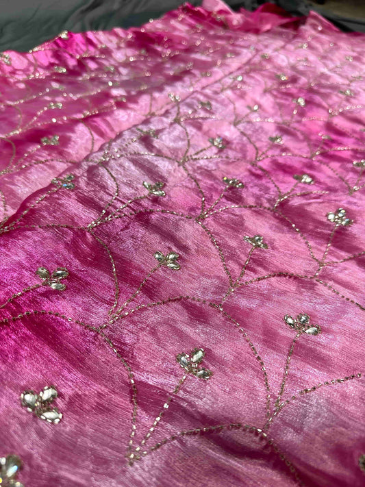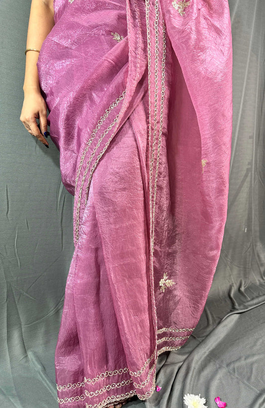 Blushing Fairy regal Pink Crushed Tissue SIlk Embroidered Cutdana Saree