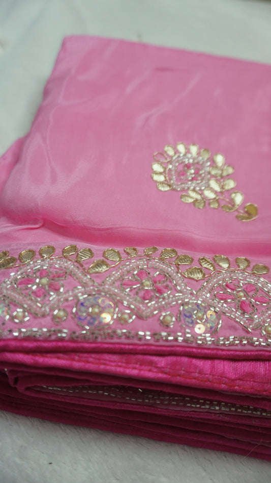 Phoolon Ki Sez Pink Heavy embroidery Organza Satin Saree