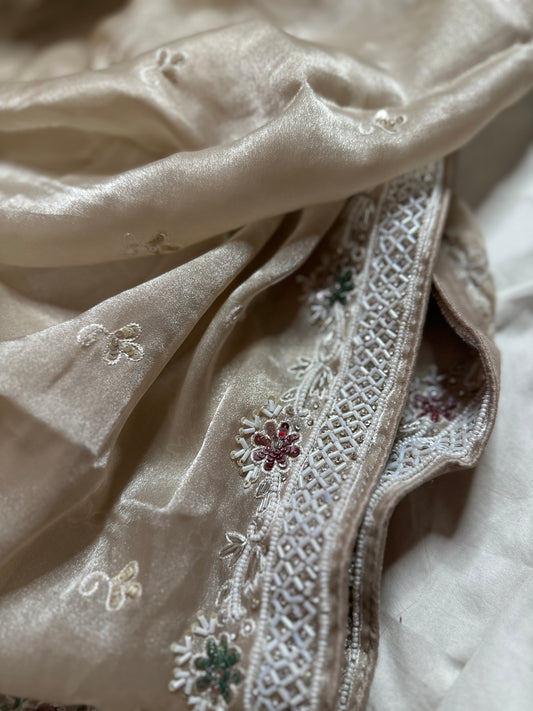 Sparkling Champagne Organza Satin Crushed Tissue Saree