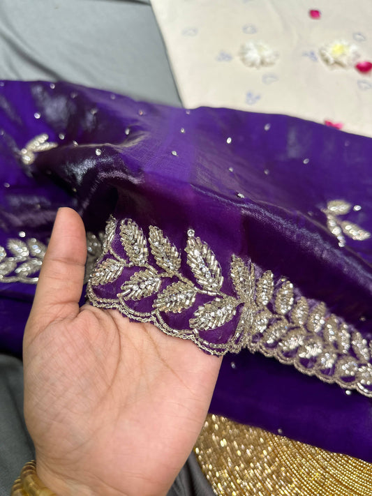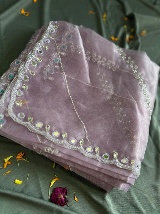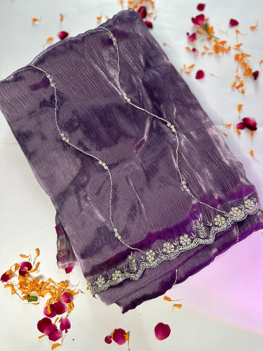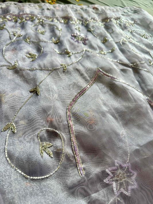 Lavender Lunar Mirror Pearl Work Organza Saree