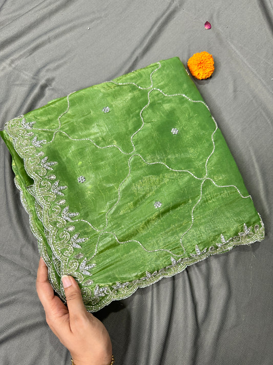 Pista Green Soft Organza Silk Party Wear Embroidered Saree