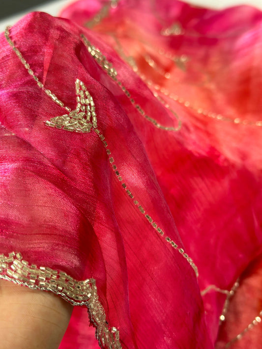 Orange Ombre Crushed Tissue Saree with Handwork Embroidery & Stone Detailing